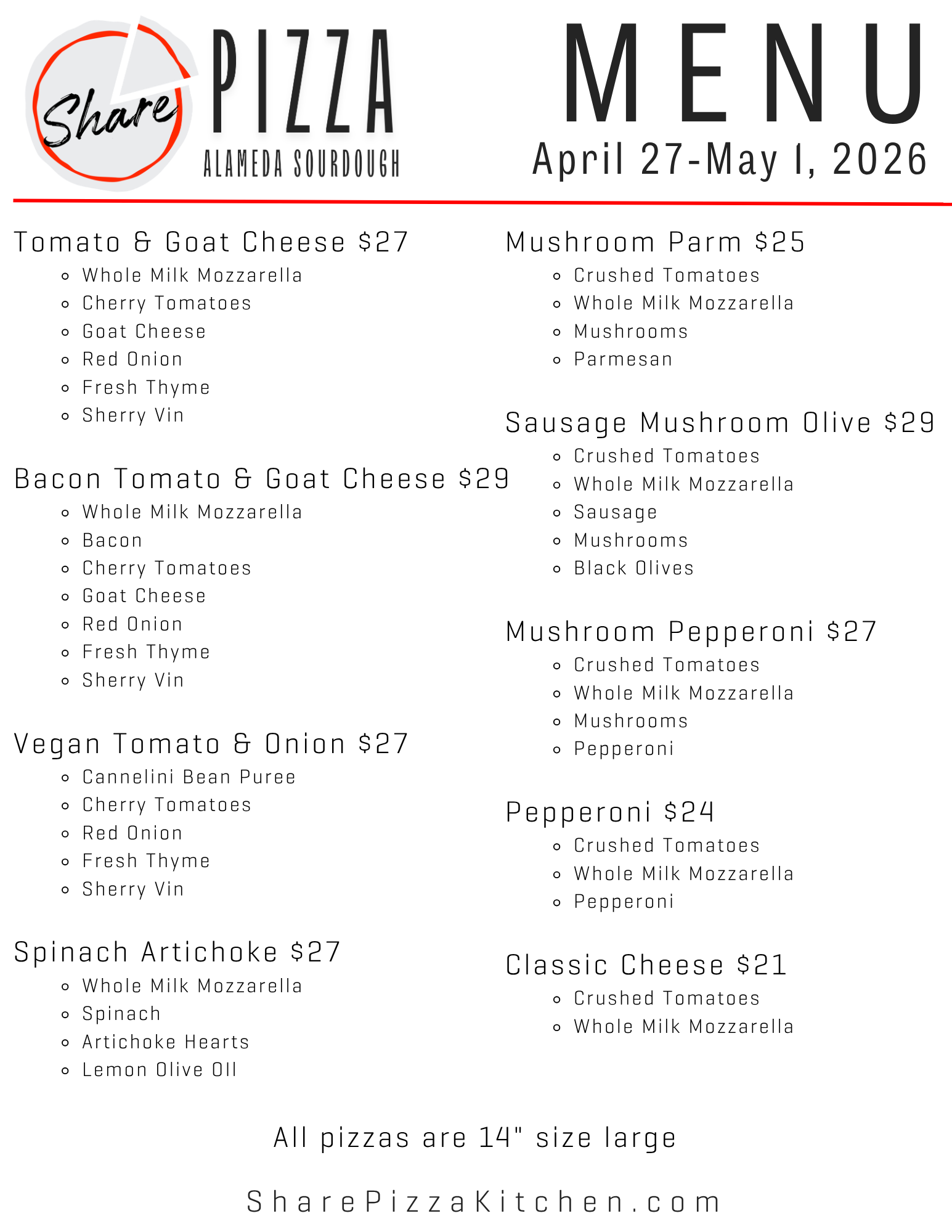 If you want to find out what our specials are before the public and get notices when we open for special events or more days for our fantastic sourdough pizza, make sure to join our mailing list below or follow us on Facebook.